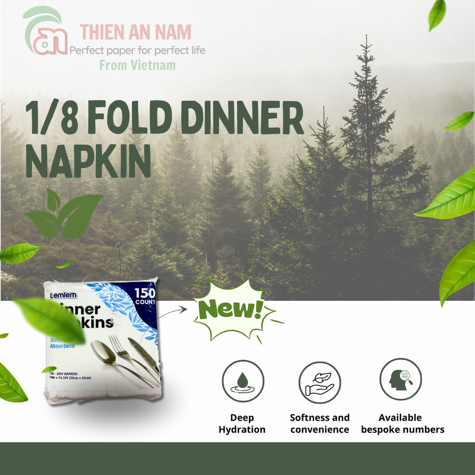 ผ้าเช็ดปากเยื่อไม้บริสุทธิ์2ชั้นแบบ1/8พับพิมพ์สีกระดาษแบบใช้แล้วทิ้งแผ่นสไตล์แพ็ค