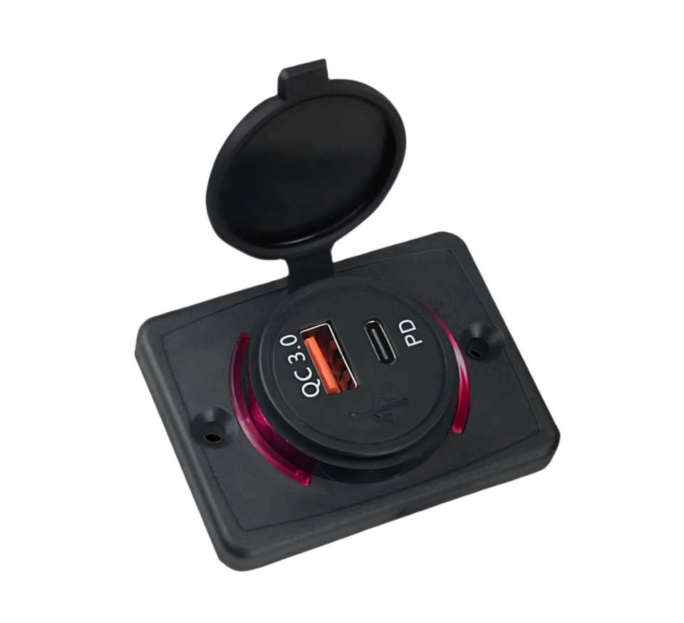 ซ็อกเก็ตที่ชาร์จในรถ20W ชนิด PD ชนิด C + ชนิด A 12/24V สำหรับรถจักรยานยนต์อัตโนมัติรถบรรทุก ATV เรือ RV รถบัส2พอร์ต