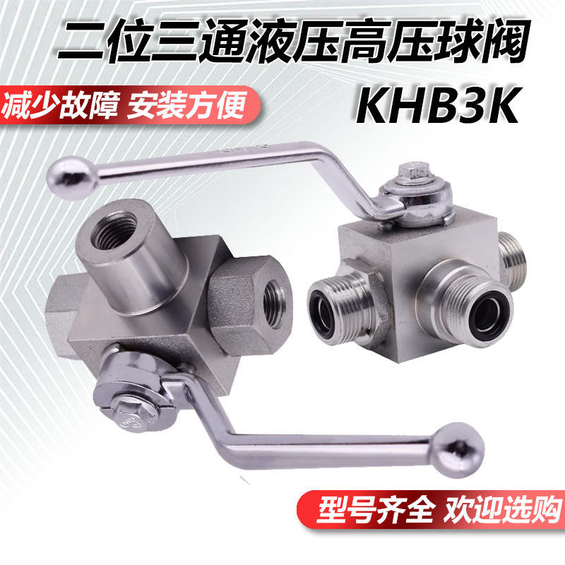 วาล์วบอลไฮดรอลิกแรงดันสูง 2 ตำแหน่ง 3 ทาง รุ่น KHB3K-G1/4 เหล็กกล้าคาร์บอน เกลียวใน วาล์วควบคุมด้วยมือ รุ่น KHB3K-G1/8