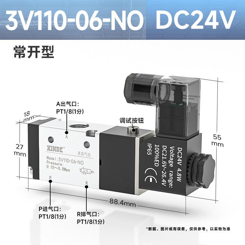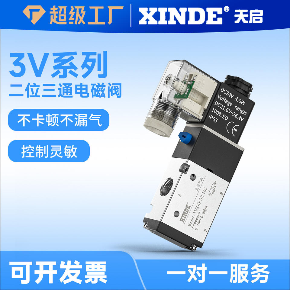 วาล์วโซลินอยด์นิวเมติก 2 ตำแหน่ง 3 ทาง รุ่น 3V210-08 สำหรับแก๊ส DC24V วาล์วควบคุมทิศทางแบบอิเล็กทรอนิกส์ รองรับ AC220V