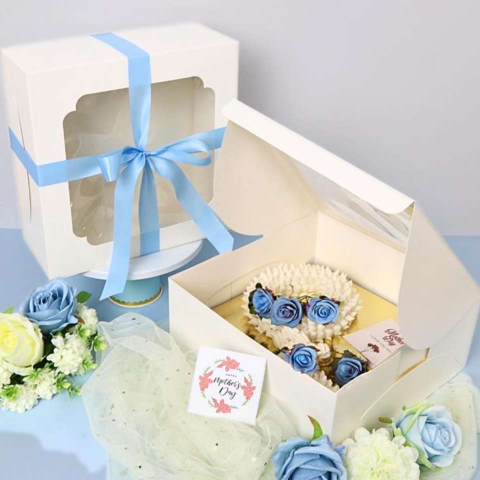 กล่องเค้กสีขาว2ปอนด์กล่องกว้างมาตรฐานคุณภาพ20/40FT วัสดุรีไซเคิลที่เป็นมิตรกับสิ่งแวดล้อมสำหรับของขวัญเบเกอรี่จัดส่งถึงแล้ว