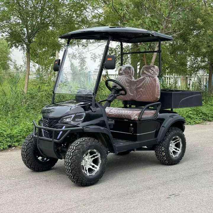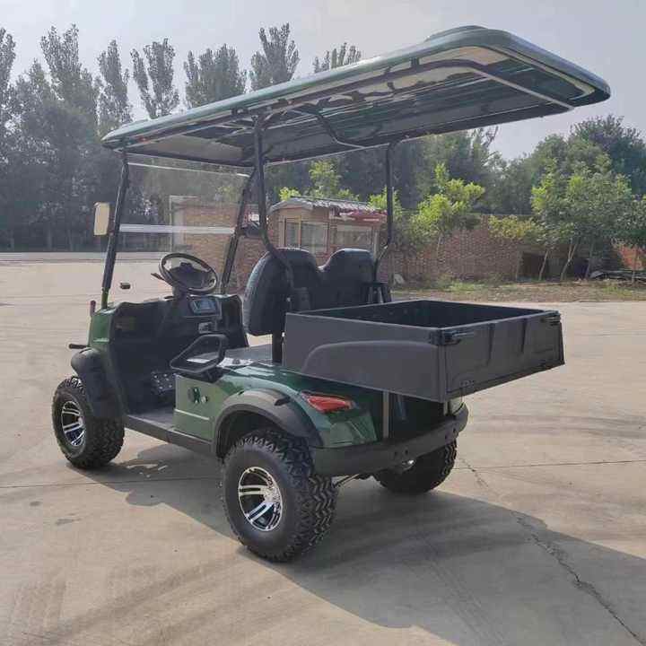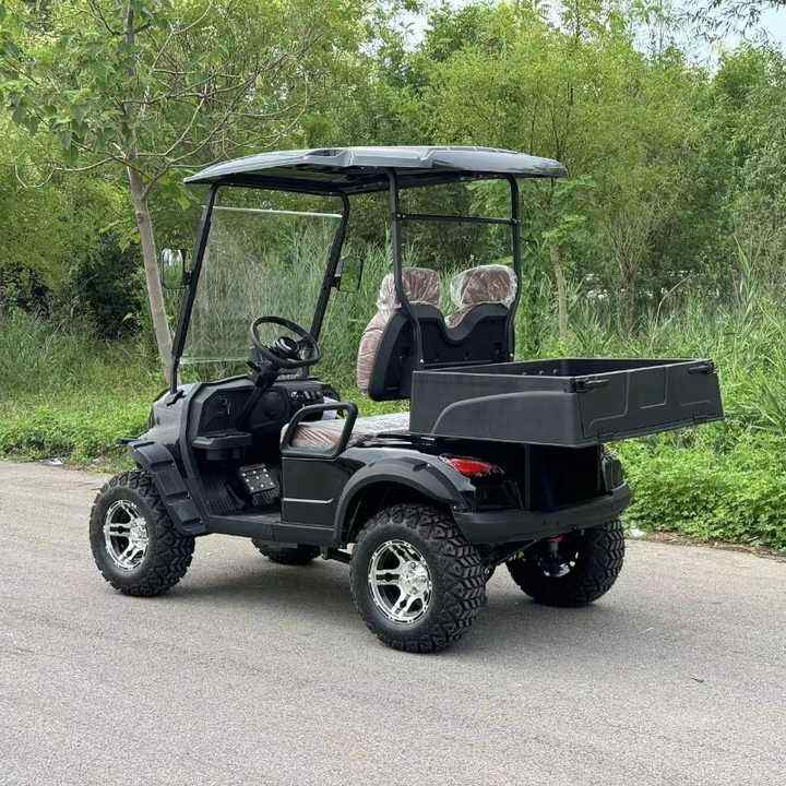รถกอล์ฟไฟฟ้า 2 ที่นั่ง 48V พร้อมกล่องเก็บสัมภาระ รถดัมพ์ขนาดเล็ก โครงเหล็ก แบตเตอรี่ลิเธียม/ตะกั่ว-กรด คอนโทรลเลอร์ Curtis อัจฉริยะ