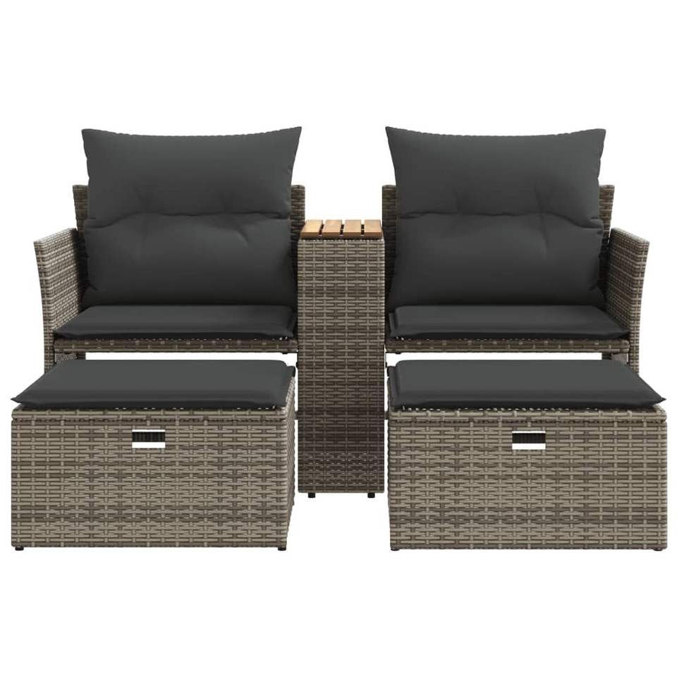 โซฟาสวนปรับระดับได้ 2 ที่นั่ง สีเทา ทำจากหวาย PE ขาปรับระดับได้ ชุดเฟอร์นิเจอร์กลางแจ้งสุดหรู