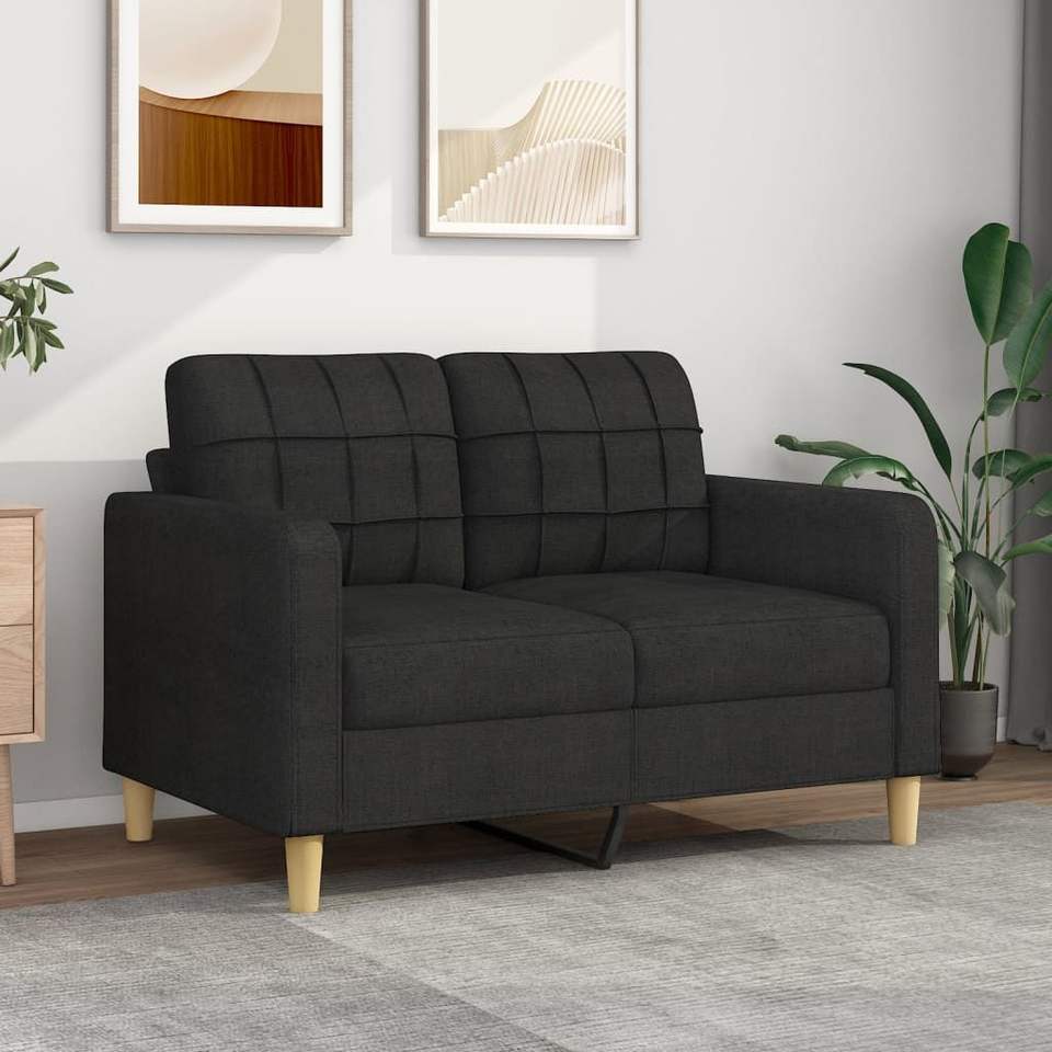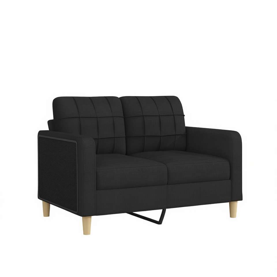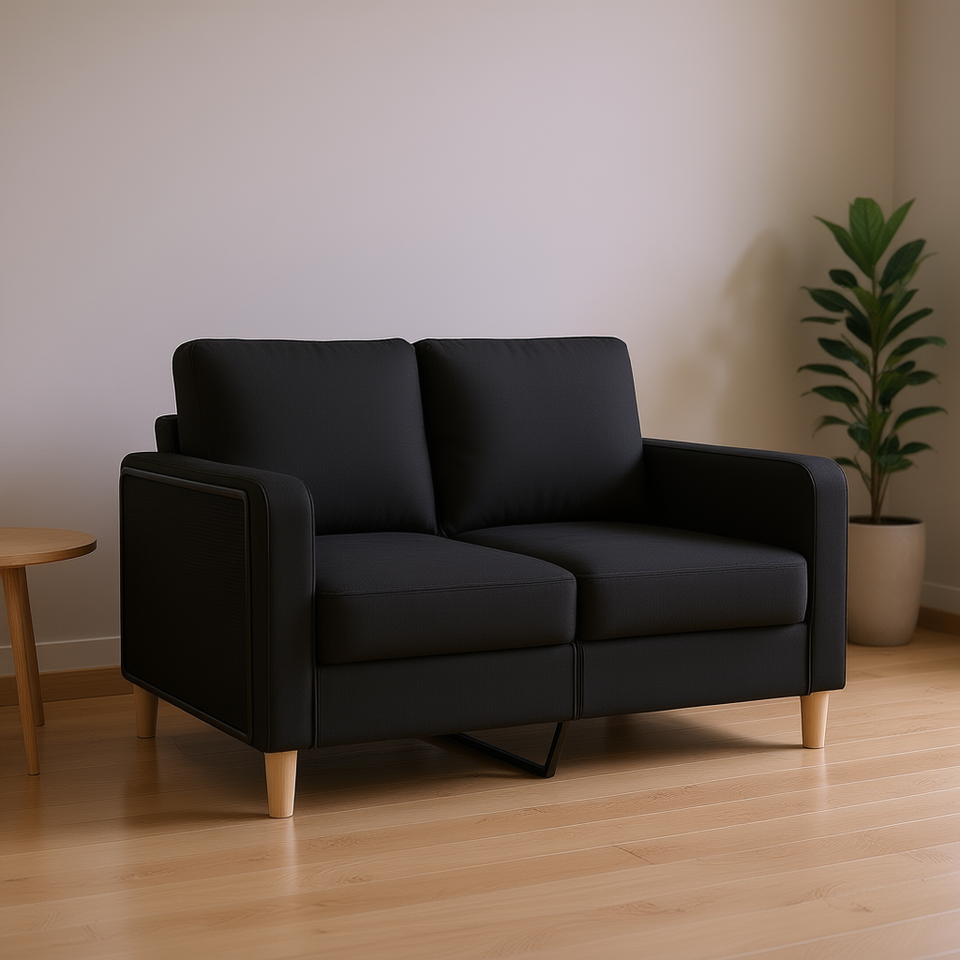 โซฟา 2 ที่นั่งสีดำสไตล์โมเดิร์นพร้อมพนักพิงแบบกระดุมและขาไม้ เฟอร์นิเจอร์ห้องนั่งเล่น