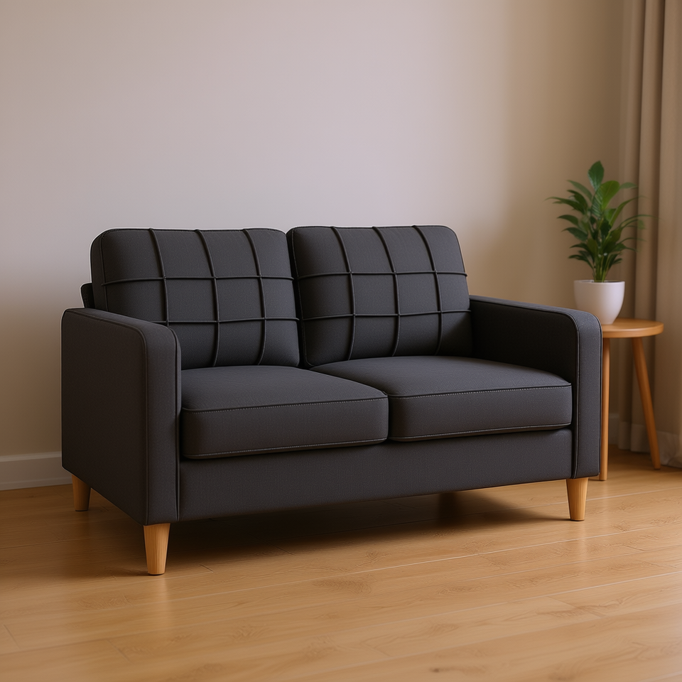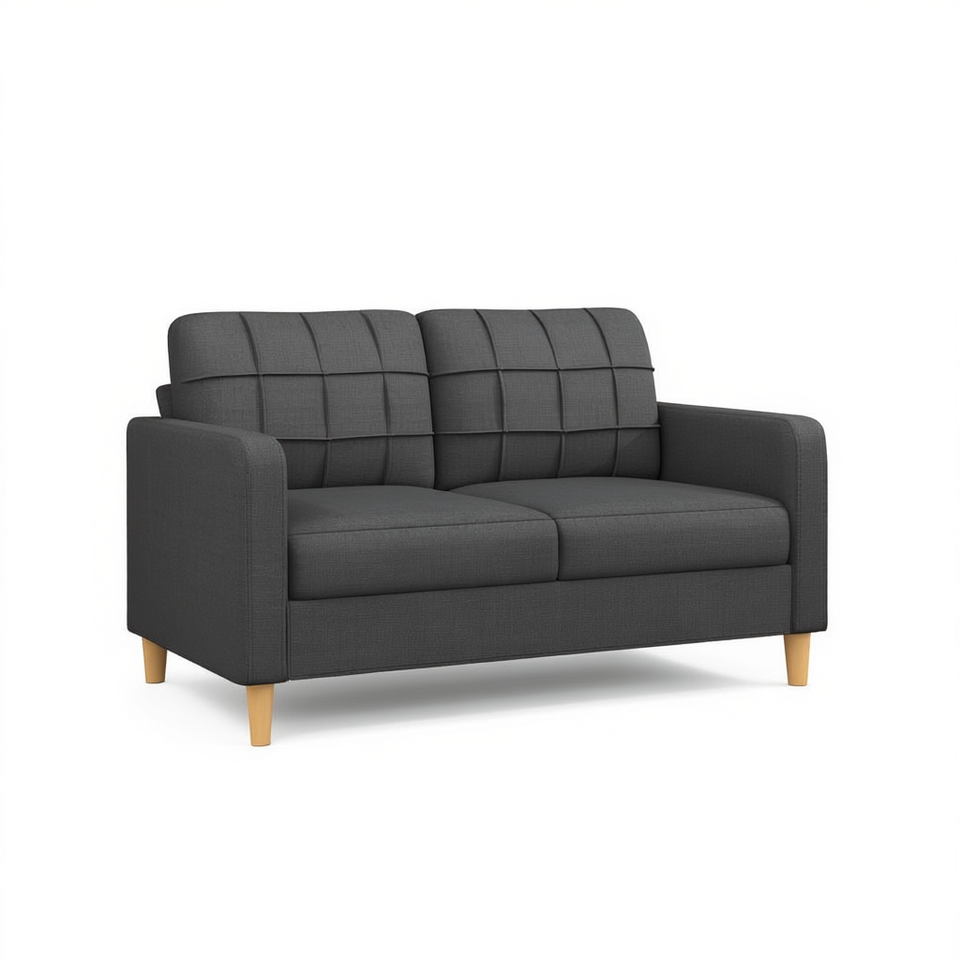 โซฟาโพลีเอสเตอร์สีเทาเข้ม 2 ที่นั่ง ความกว้างที่นั่ง 55.1 นิ้ว เฟอร์นิเจอร์ห้องนั่งเล่นที่ทนทาน ขาไม้พนักพิงแบบทัฟท์ทันสมัย