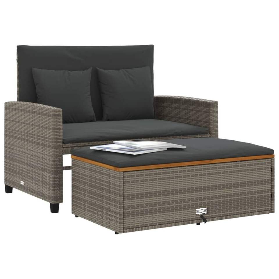 โซฟาสำหรับระเบียงทำจากไม้อะคาเซียทำจากหวายโพลีสีเทา2-Seater พร้อมเบาะรองนั่งโซฟาในสวน