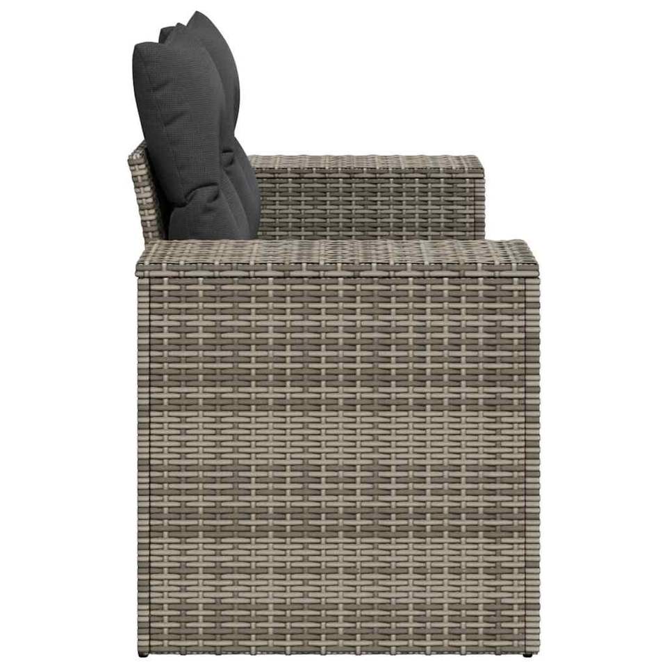 โซฟาสวน 2 ที่นั่ง สีเทา ทำจากหวาย PE และเหล็กเคลือบสีฝุ่น วัสดุโพลีเอสเตอร์ทนทาน