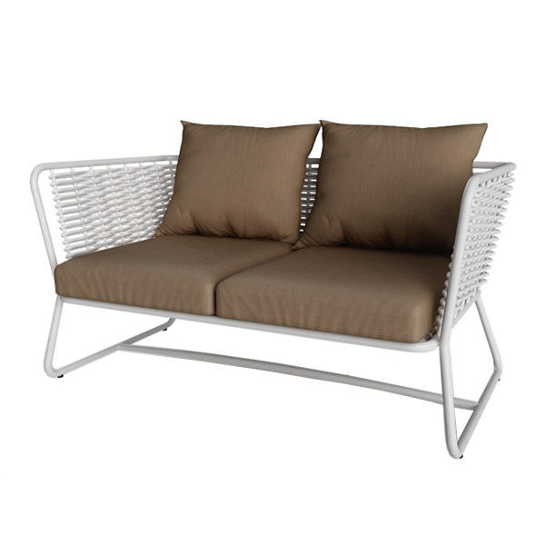 โซฟา 2 ที่นั่ง โครงอะลูมิเนียม พร้อมหวายสังเคราะห์ทอที่พนักพิงและที่นั่ง พร้อมเบาะรองนั่ง สำหรับใช้ภายในและภายนอกอาคาร