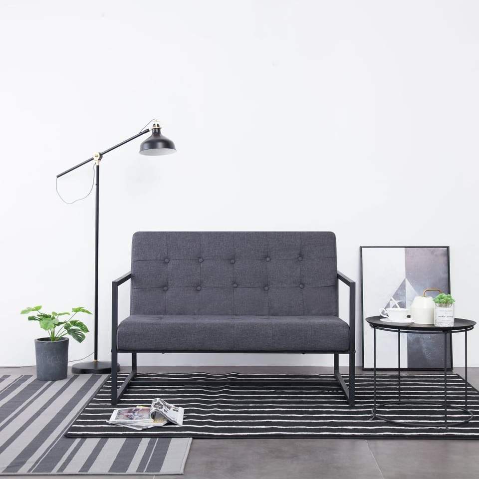 เก้าอี้เหล็ก 2 ที่นั่งหุ้มผ้าโพลีเอสเตอร์สีเทาเข้มสำหรับห้องนั่งเล่น