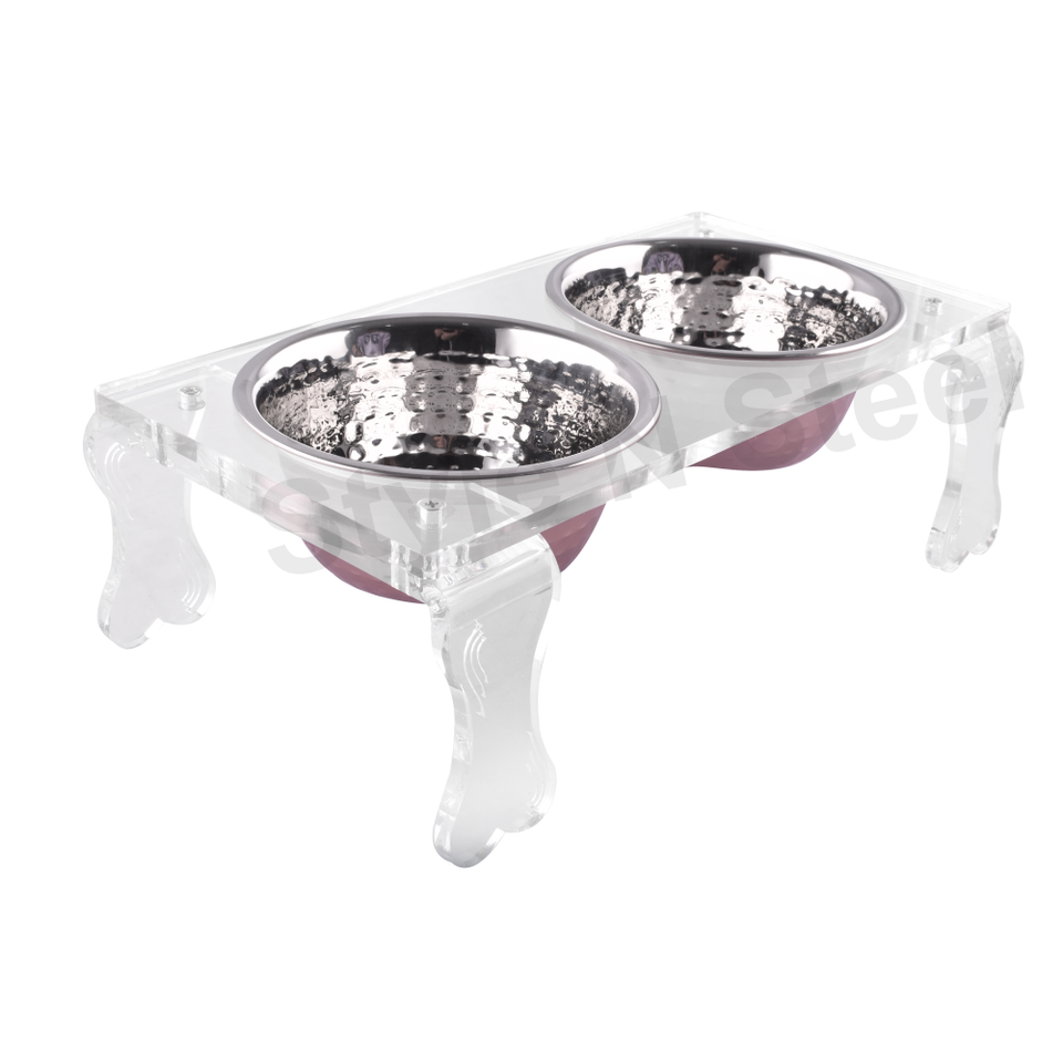 ชามสำหรับสัตว์เลี้ยง2ชุดชามสเตนเลสแบบพกพาเป็นมิตรกับสิ่งแวดล้อมสไตล์ทันสมัยพร้อมลายไม้ขายดี