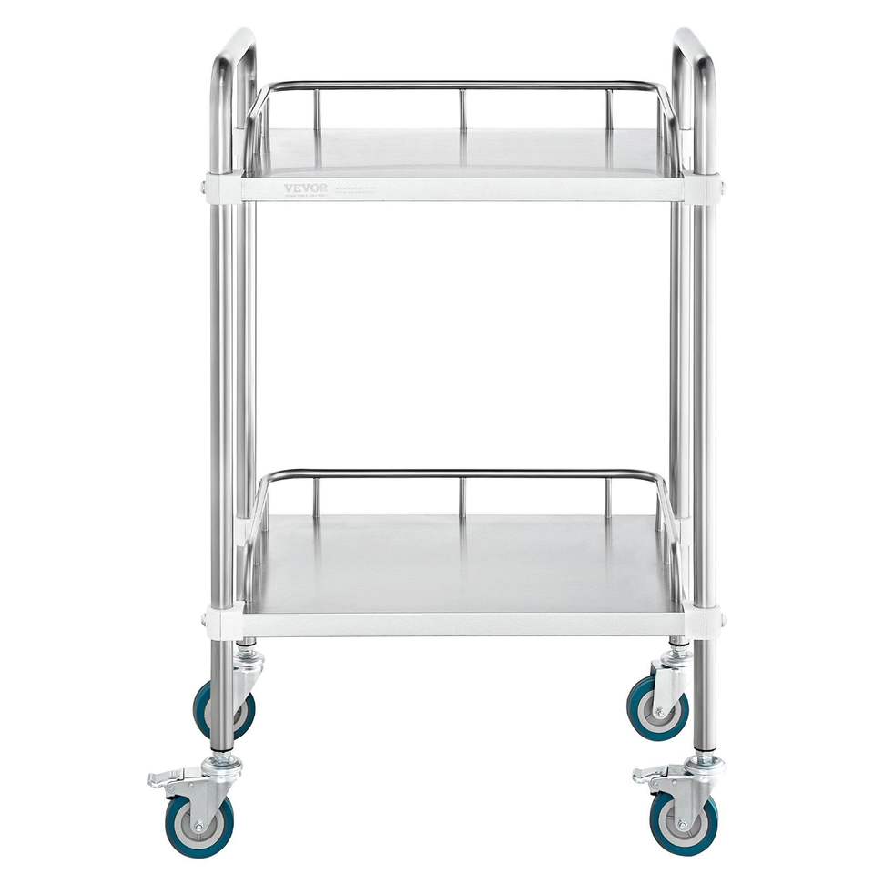 รถเข็นสแตนเลส2ชั้นหมุนได้รอบ15.16 "x21.57" x34.06 "สำหรับทันตกรรมคลินิกร้านเสริมสวย