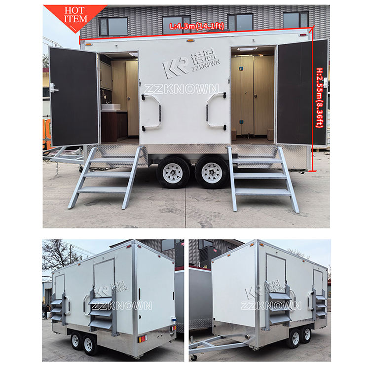 ห้องน้ำสาธารณะ 2 ห้อง ห้องสุขาสำหรับงานกลางแจ้ง ห้องน้ำเคลื่อนที่แบบพกพา รถพ่วงห้องน้ำเคลื่อนที่สุดหรู