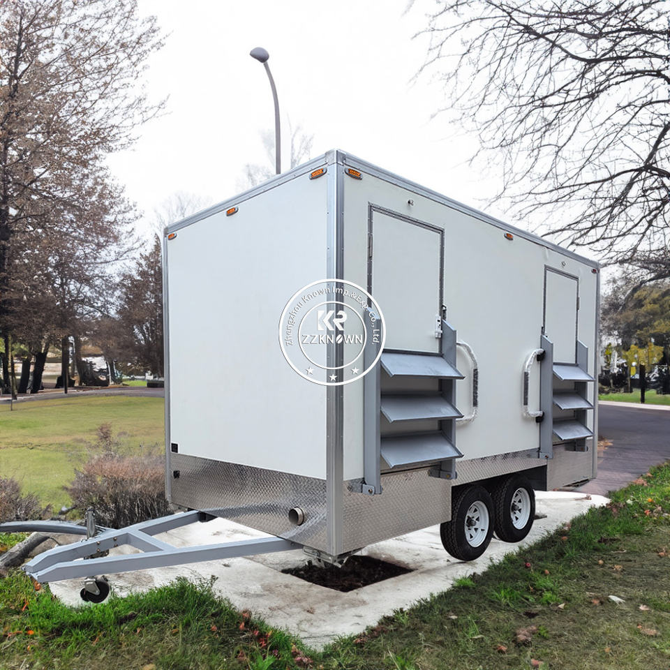 รถพ่วงห้องน้ำเคลื่อนที่หรูหรา 2 สถานี ขนาด 2.9 เมตร สำหรับห้องอาบน้ำ ห้องสุขา และห้องน้ำสำหรับตั้งแคมป์