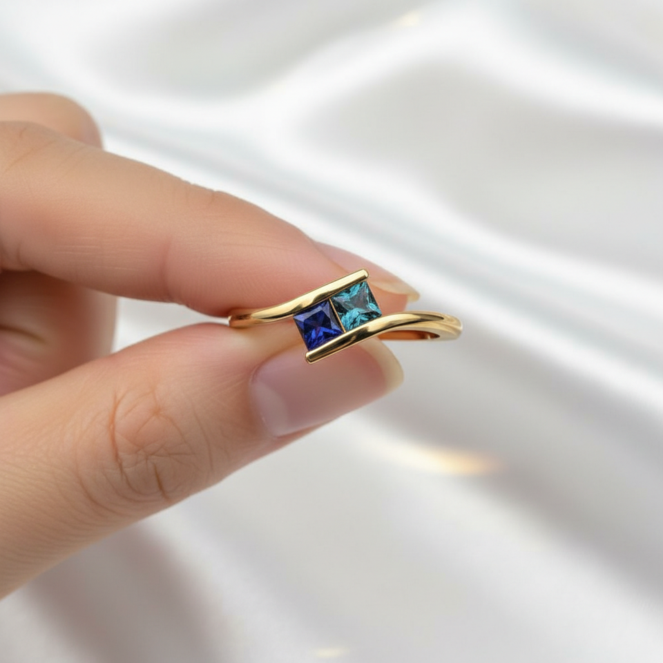 แหวนแต่งงานเพชรทรงเจ้าหญิงสีรุ้ง 2 เม็ด ประดับเพชรซิร์คอน เงินแท้ 925 หรูหรา แหวนหมั้นแบบ Toi Et Moi Bypass