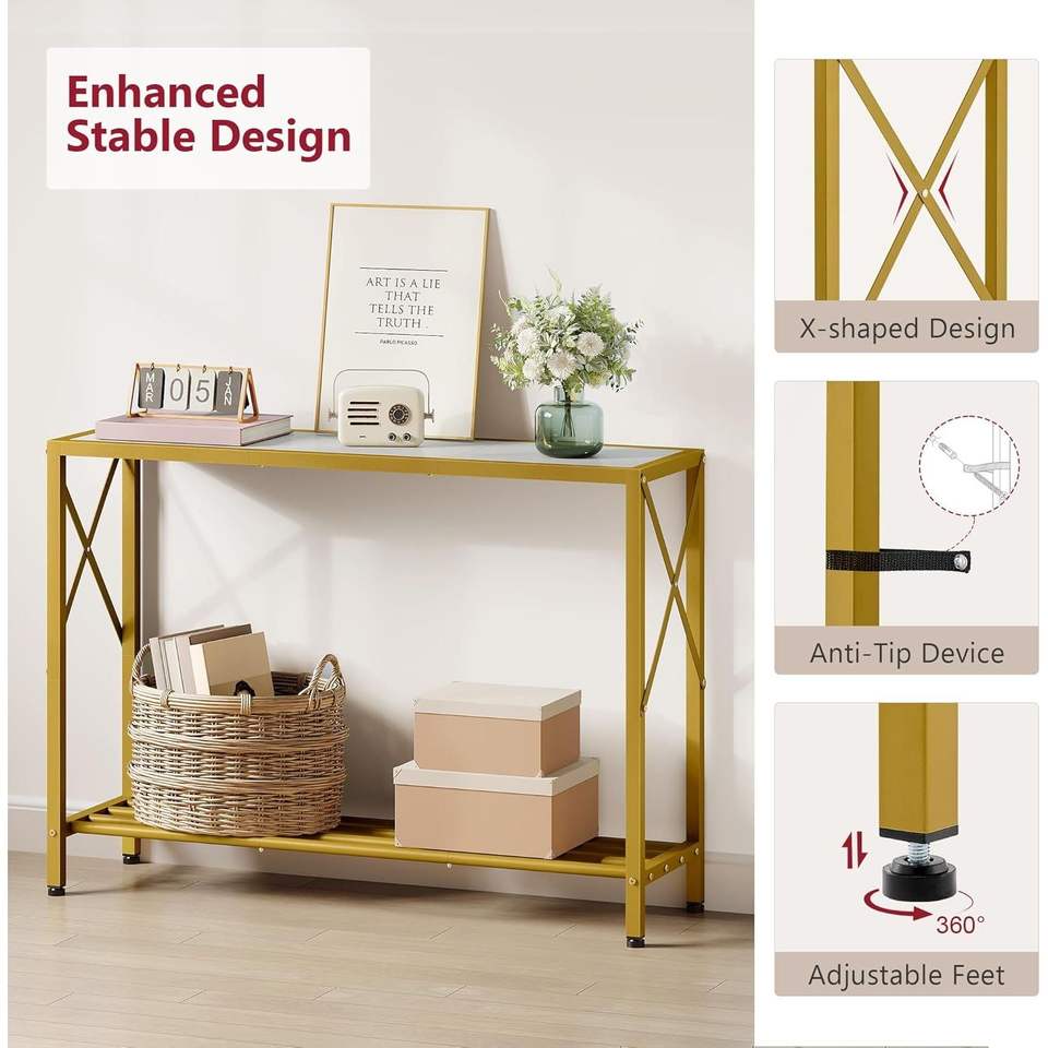 โต๊ะคอนโซลทรงแคบ 2 ชั้น ขนาด 41.8 นิ้ว พร้อมชั้นวางของ สำหรับวางหน้าประตู โต๊ะโซฟาสำหรับห้องนั่งเล่น โถงทางเข้า หรือโถงทางเดิน