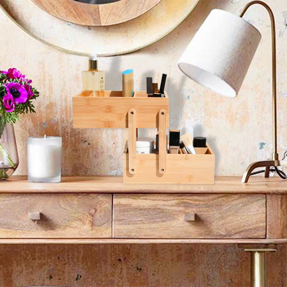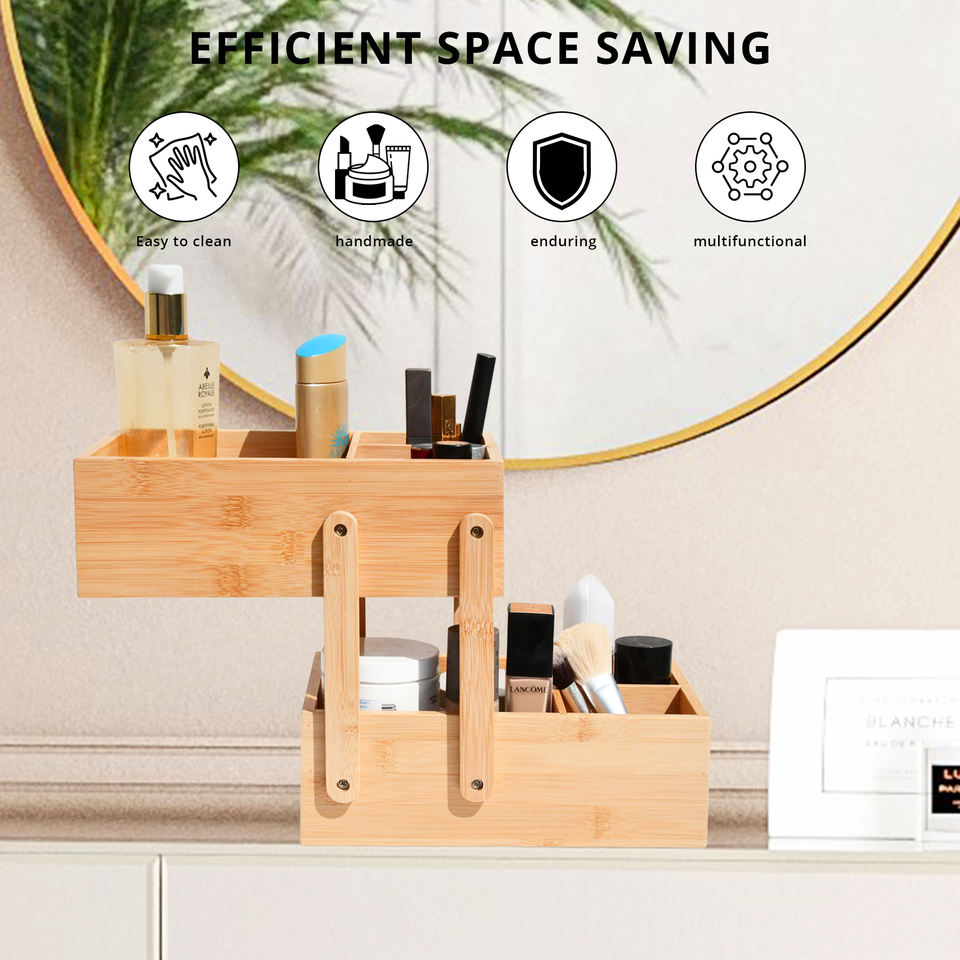 แท่นวางเครื่องสำอางไม้ไผ่2ชั้นสำหรับวางลิปสติกน้ำหอมเครื่องสำอางอเนกประสงค์สำหรับใช้ในห้องน้ำ