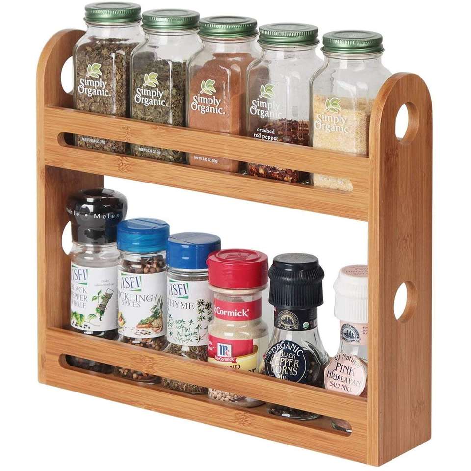 ชั้นวางเครื่องเทศไม้ไผ่ 2 ชั้น ชั้นวางเครื่องเทศไม้ไผ่สำหรับจัดระเบียบในครัว
