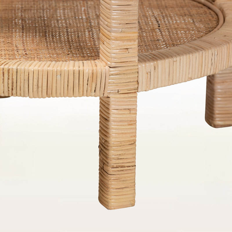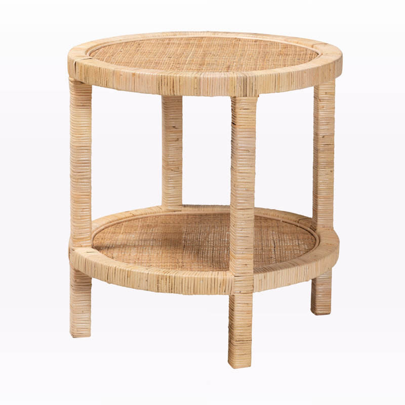 โต๊ะ2ชั้นสไตล์โบฮีเมียนไม้มะฮอกกานีสีน้ำตาลธรรมชาติพร้อมเฟอร์นิเจอร์หวายธรรมชาติสำหรับบ้าน