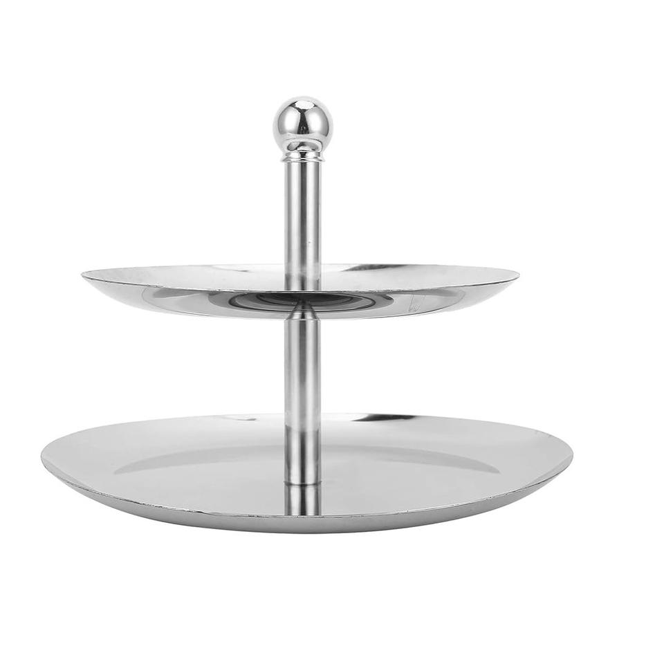 ถาดรองเค้กสีเงิน2ชั้นถาดโลหะสำหรับวางเค้กโต๊ะสำหรับร้านอาหารของตกแต่งวันเกิด