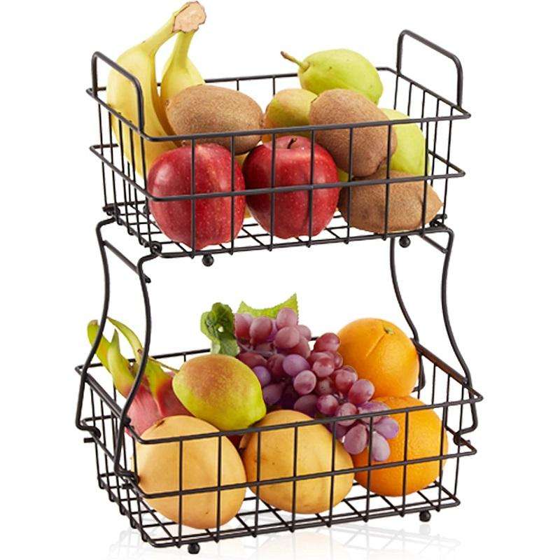 2 Tier Detachable Fruit Basket Black Fruit Bowl for Kitchen Counter Vegetable Bread Snack Storage Basket Storage Basket