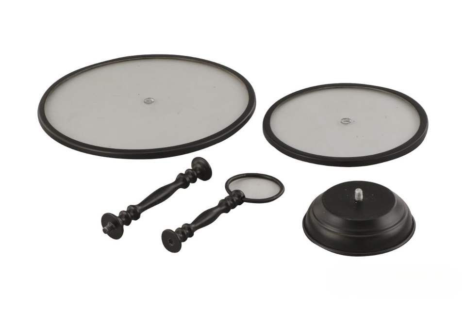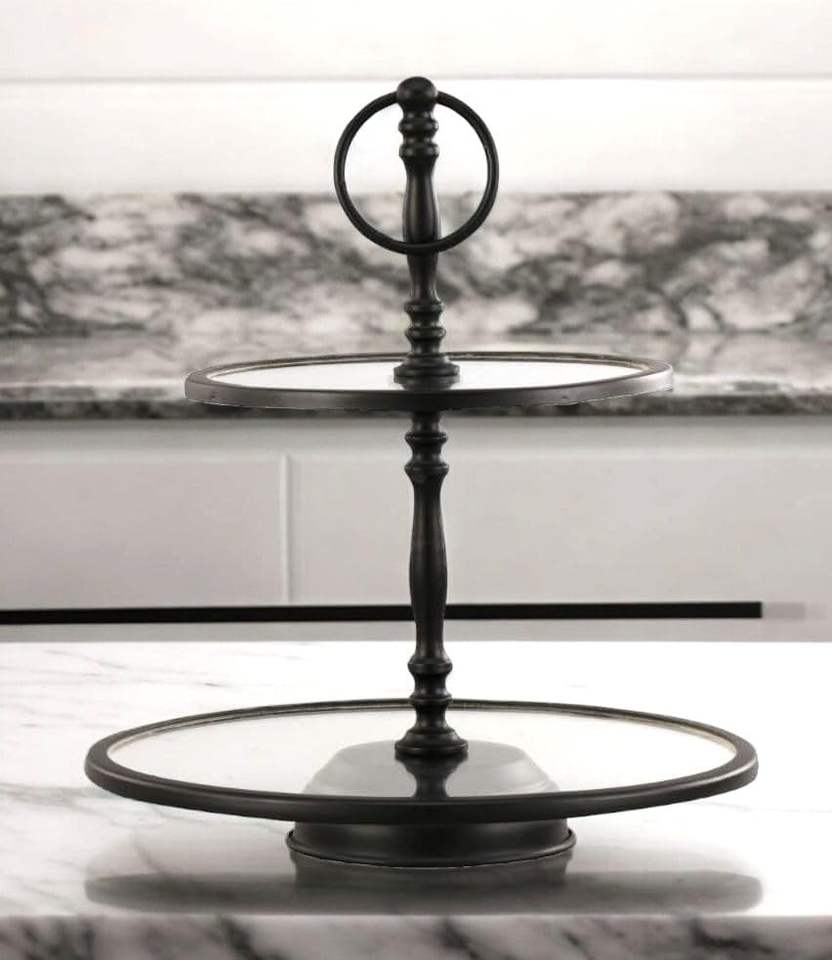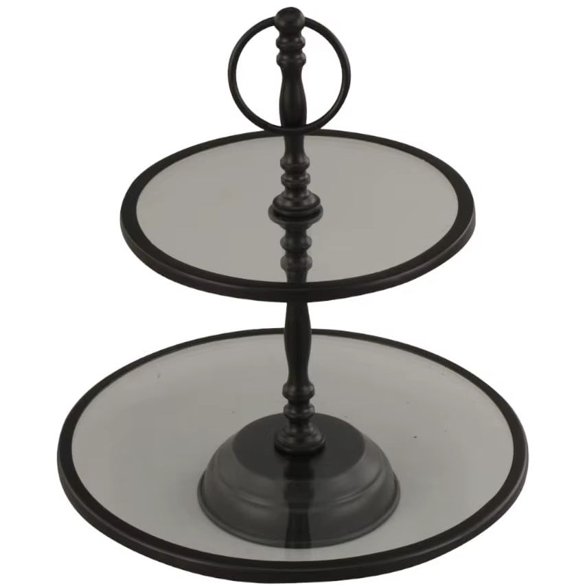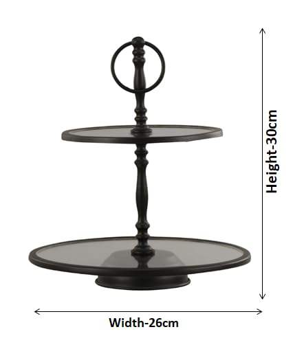 ชั้นวางเค้ก 2 ชั้น ทำจากแก้วและโลหะ คุณภาพส่งออก ทรงกลม สำหรับโชว์คุกกี้และคัพเค้ก แก้วรมควันสีดำด้าน ผลิตในอินเดีย