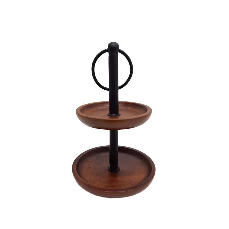 2-Tier Metal and Wood Cake Stand Natural And Silver Stand Custom Size Round Shape Home Wedding and Birthday Parties Decoration