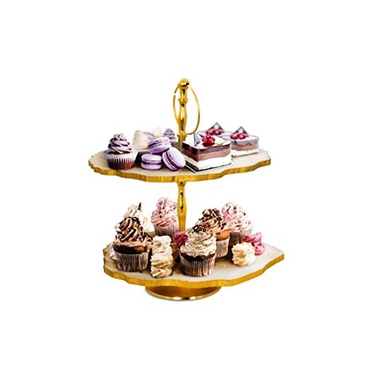 2ชั้นเรซิ่นยืนเค้กที่มีอุปกรณ์ฮาร์ดแวร์สำหรับการทำเค้กยืนตกแต่งบ้านสำหรับขนาดที่กำหนดเองสำหรับขาย