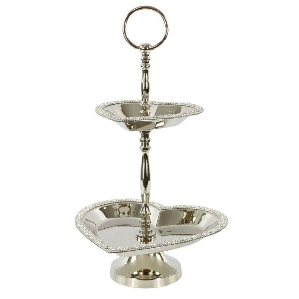ชั้นวางเสิร์ฟ 2 ชั้น ดีไซน์หรูหรา สีเงิน ทำจากโลหะ สำหรับวางขนมหวาน เค้ก เหมาะสำหรับงานแต่งงาน งานเลี้ยงน้ำชา ราคาสุดคุ้ม