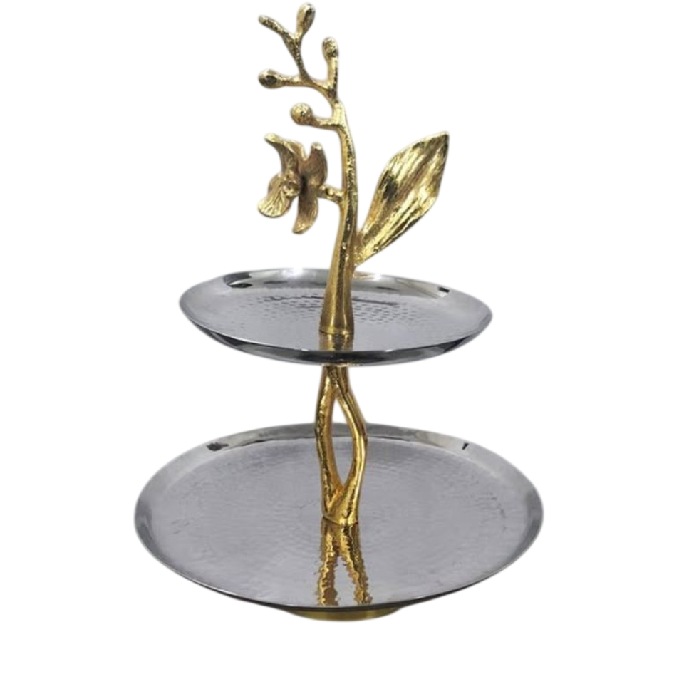 ชั้นวางเค้กสแตนเลส 2 ชั้น ลายดอกกล้วยไม้สีทอง สำหรับตกแต่งและเสิร์ฟคัพเค้ก เหมาะสำหรับงานปาร์ตี้และตกแต่งบ้าน
