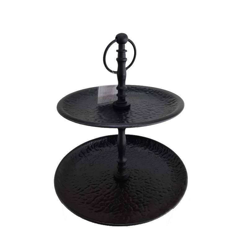 แท่นวางเค้กอลูมิเนียม2ชั้นดีไซน์ทันสมัยสำหรับงานเลี้ยงวันเกิดเค้กสีดำ