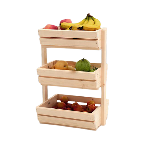 ตะกร้าไม้ผักและผลไม้2ชั้นดีไซน์ยอดนิยมตะกร้าใส่ผลไม้ปรับขนาดได้ตามต้องการ