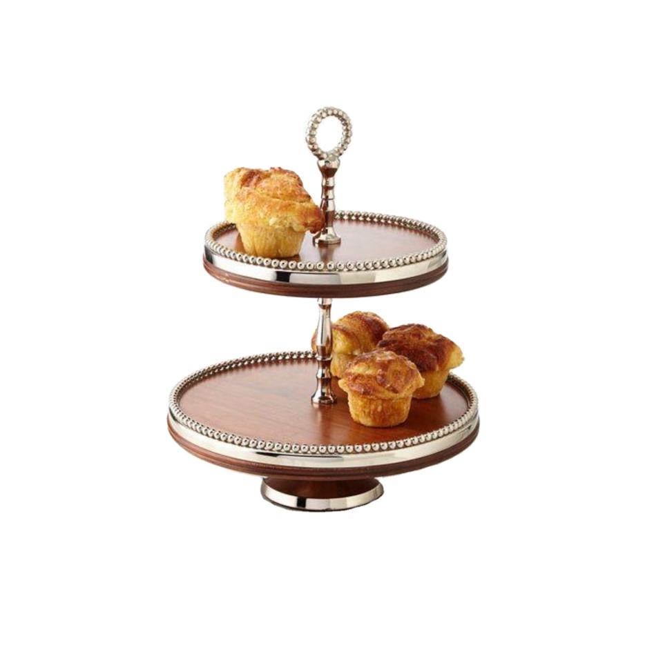 ที่วางเค้กทำจากไม้2ชั้นจานเสิร์ฟเค้กของหวานจานเสิร์ฟเค้กที่วางคัพเค้กที่บ้าน