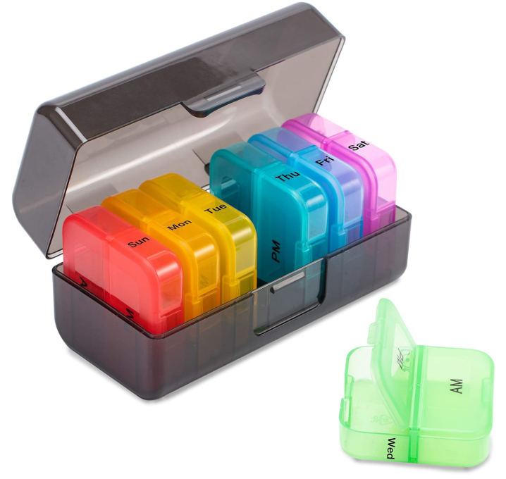 กล่องใส่ยา 2 ครั้งต่อวัน แบบรายสัปดาห์ 7 วัน กล่องยาแบบรายวันเช้า-เย็น พร้อมช่องเปิดขนาดใหญ่สองด้านเพื่อความสะดวกในการใช้งาน