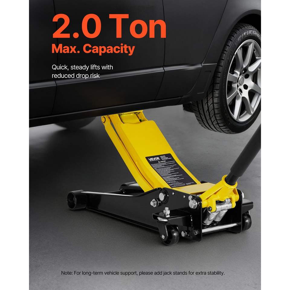 แม่แรงยกรถเหล็กแบบเตี้ย 2 ตัน (4400 ปอนด์) แบบสองลูกสูบ ยกเร็ว พร้อมรถเข็น