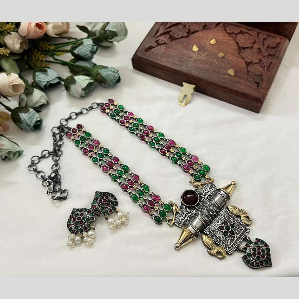 สร้อยคอยาวหิน pota เคลือบ2สีชุดเครื่องประดับหรูหรา