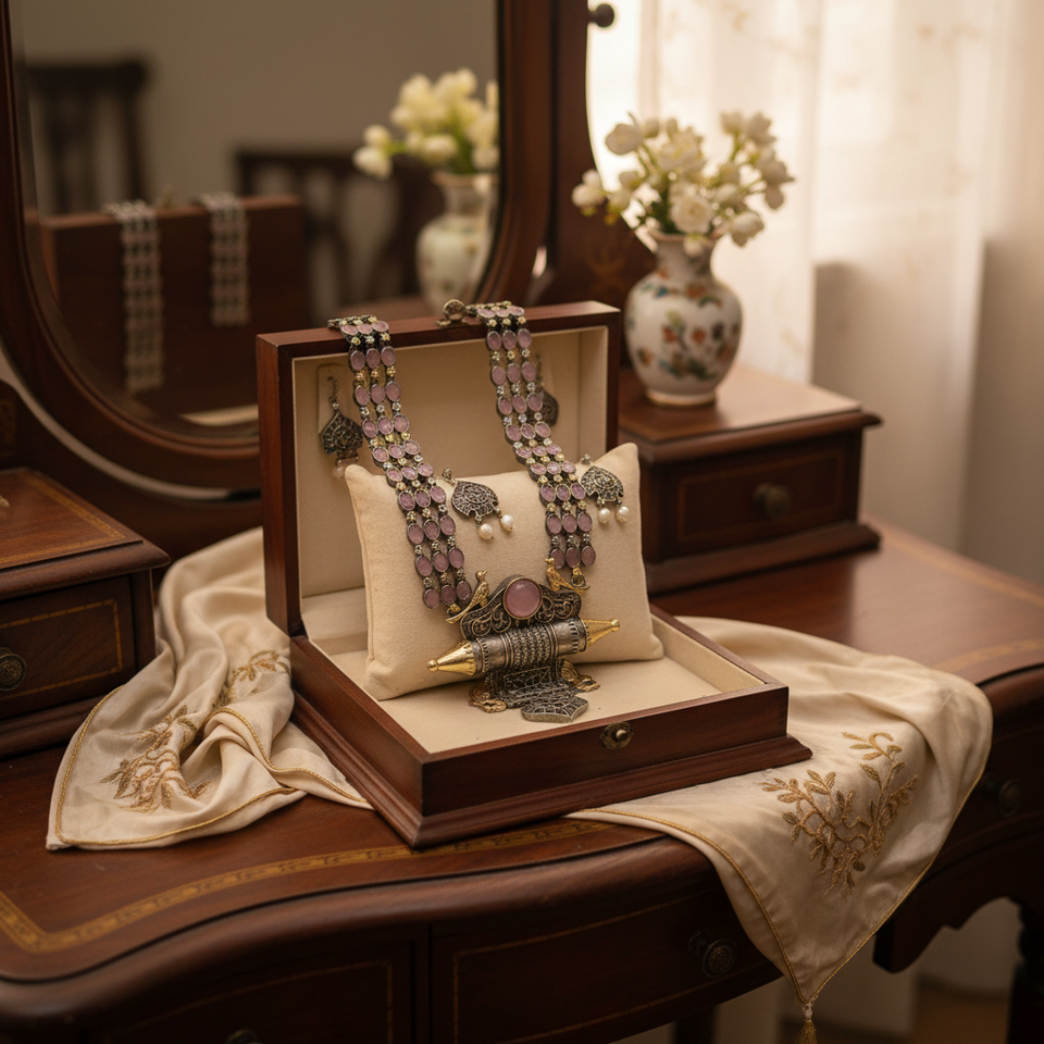สร้อยคอยาวหิน pota เคลือบ2สีชุดเครื่องประดับหรูหรา