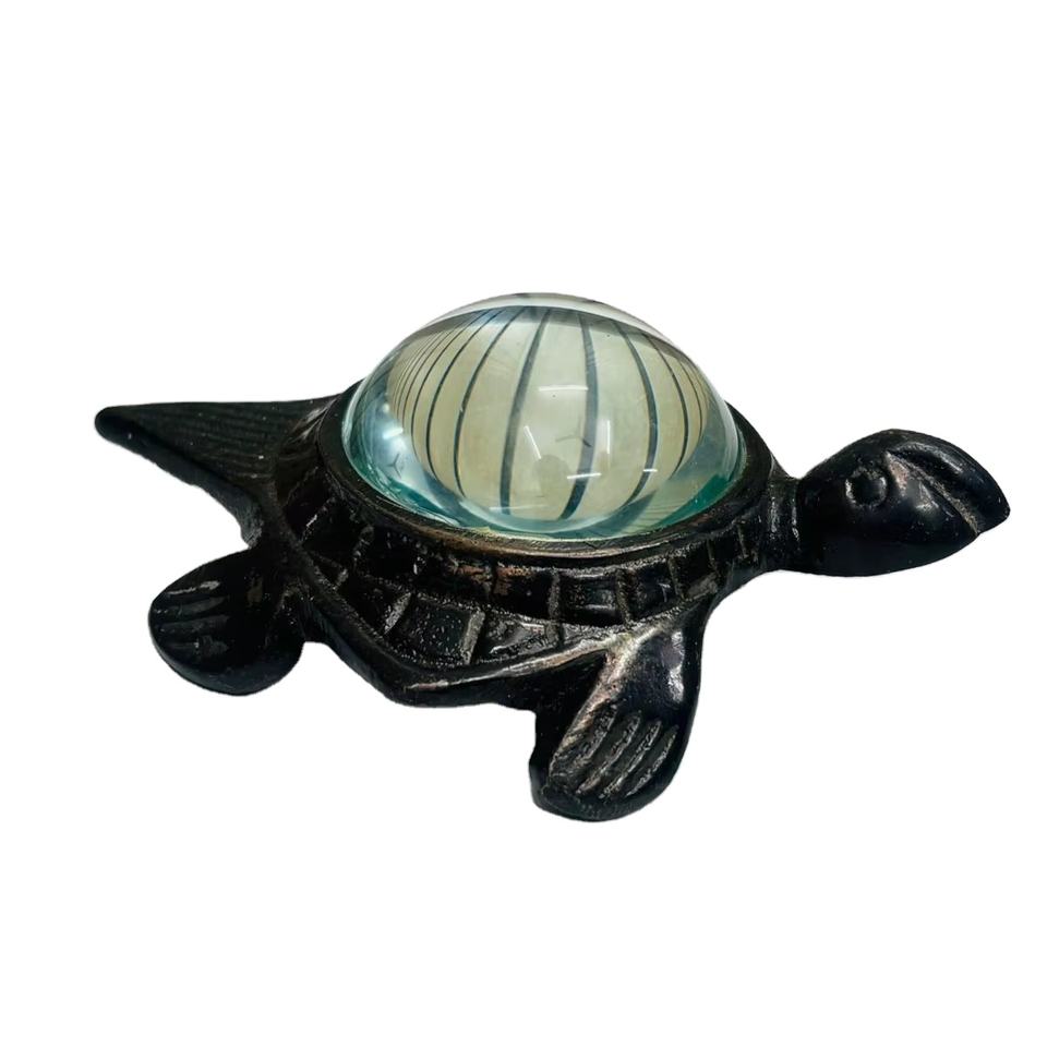 ที่ทับกระดาษทรงโดมทองเหลืองแท้ รูปเต่า ขนาด 2 นิ้ว พร้อมแว่นขยาย