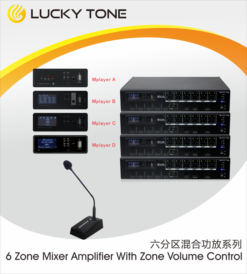 เอาท์พุต:100 โวลต์, 70 โวลต์ และ 4 โอห์ม