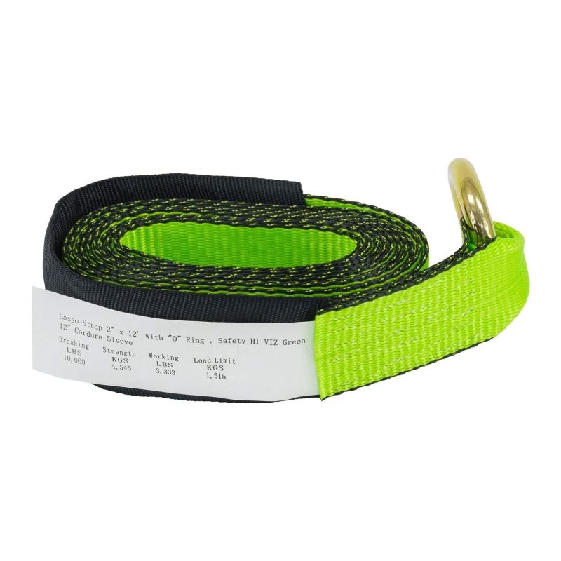 สายรัดล้อแบบวินซ์ 2 นิ้ว x 12 ฟุต พร้อมห่วงโอริง สายรัดนิรภัยสีเขียวสะท้อนแสง ผลิตจากโพลีเอสเตอร์ สำหรับยึดยางรถยนต์ รับน้ำหนักได้ 10,000 ปอนด์