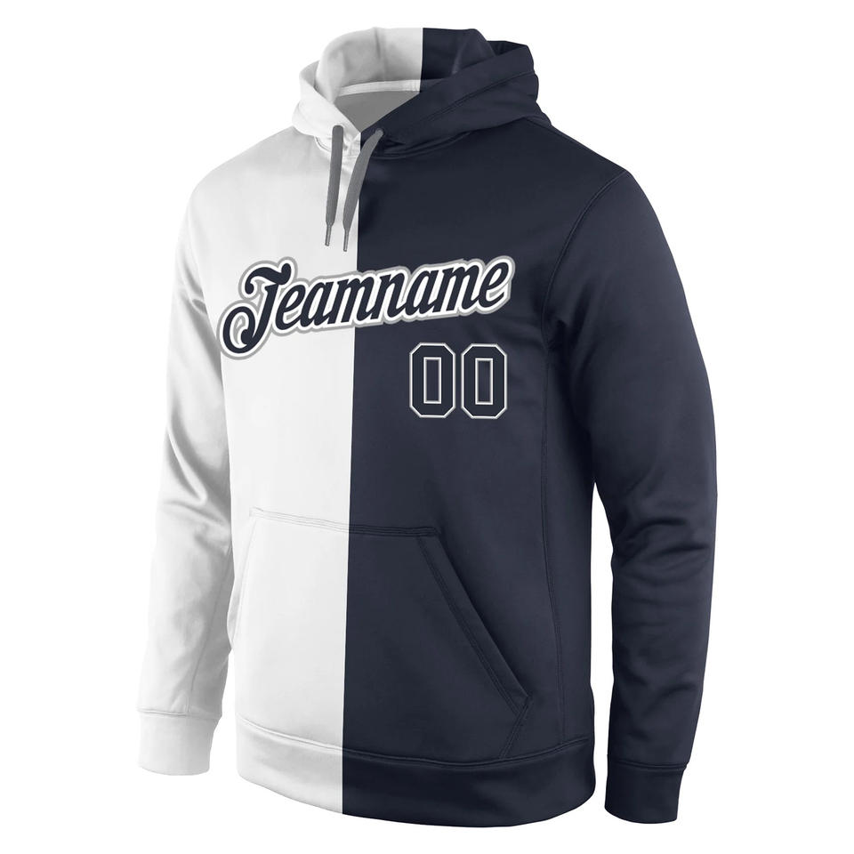 Direct Factory Wholesale 2-Colored (White and Navy) Pullover Sports Hoodie with Embroidered Team Name Spring Appropriate Hoody