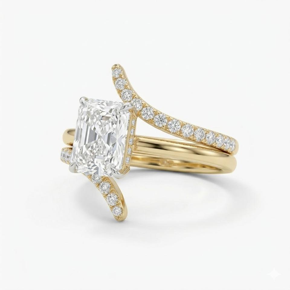 แหวนหมั้นเพชรแล็บโกรว์ทรงเรเดียนท์คัท 2 กะรัต ทองคำแท้ 14K พร้อมแหวนแต่งงานแบบโค้ง แหวนซ้อนกันได้ ชุดแหวนเจ้าสาว