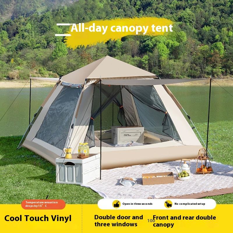 เต็นท์กางอัตโนมัติพับได้พกพาได้แบบ2-in-1สำหรับ3-4คนเต็นท์สำหรับตั้งแคมป์แบบข้ามพรมแดนอุปกรณ์ชายหาดกลางแจ้งทำจากผ้าอ๊อกซ์ฟอร์ด