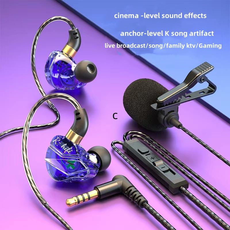 หูฟัง Koraoke แบบมีสาย2-in-1 3.5มม. พร้อมไมโครโฟนการตรวจสอบการกลับมาแบบสดสำหรับการร้องเพลงบนคอมพิวเตอร์และโทรศัพท์มือถือ