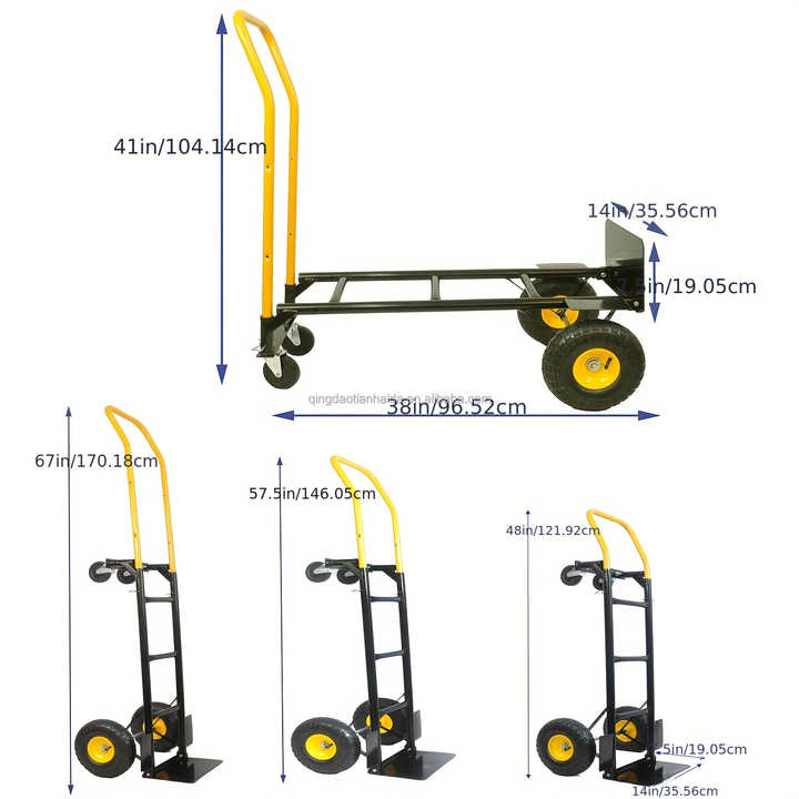 รถเข็นแบบ 2-in-1 รับน้ำหนักได้ 400 ปอนด์ สามารถเปลี่ยนเป็นรถเข็นแบบแท่นวางของได้ พร้อมล้อ 4 ล้อ รถเข็นอเนกประสงค์สำหรับขนย้าย รถเข็นแบบ Heavy-duty