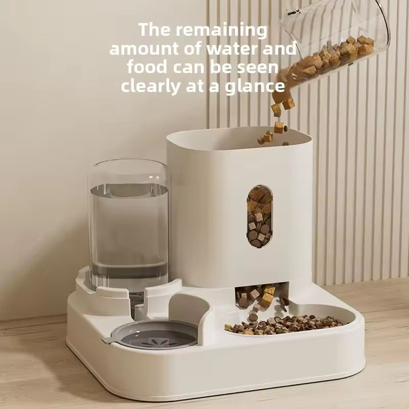 ชุดชามอาหารสัตว์เลี้ยงอัตโนมัติ 2-in-1 สำหรับแมวและสุนัข ชามพลาสติกแข็งแบบใหม่ ความจุขนาดใหญ่ พร้อมที่จ่ายน้ำ
