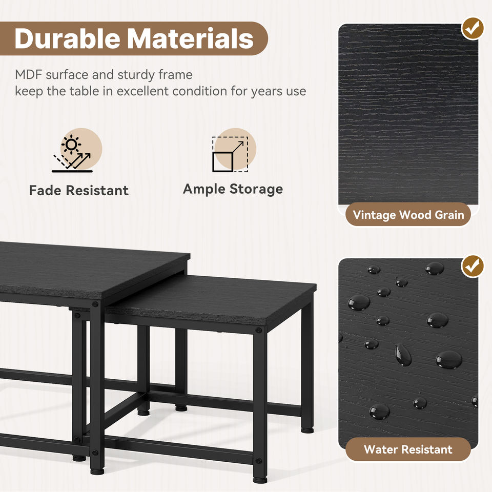 ชุดโต๊ะกาแฟ 2-in-1 ท็อปโต๊ะไม้ โครงโลหะ ทันสมัย เป็นมิตรกับสิ่งแวดล้อม ทำด้วยมือ วัสดุทนทาน โครงสร้างแข็งแรง ปรับระดับได้