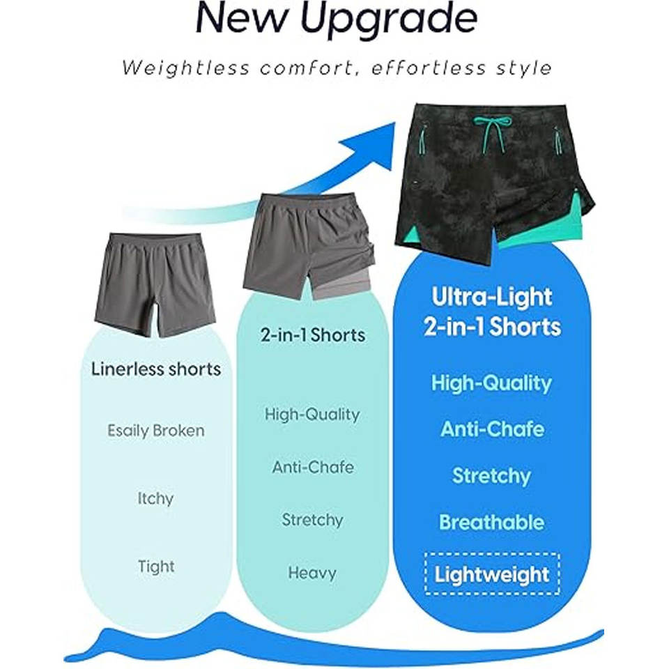 กางเกงขาสั้นรัดรูปแบบ2-in-1สำหรับผู้ชายกางเกงขาสั้นสำหรับใส่เล่นกีฬาฤดูร้อนพร้อมตัวปิดเอวยางยืด