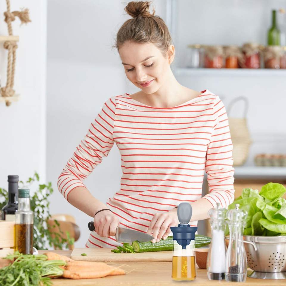 ขวดแก้วใส่น้ำมันแบบ 2-in-1 พร้อมหัวหยดซิลิโคนและแปรง ใช้ตวงและจ่ายน้ำมันมะกอก อุปกรณ์ครัว