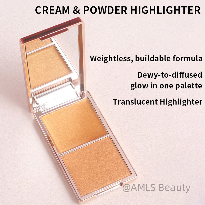 พาเลทไฮไลท์แบบ2 in 1ครีมและแป้งแต่งหน้าแบบสองสีสว่างติดฉลากส่วนตัว