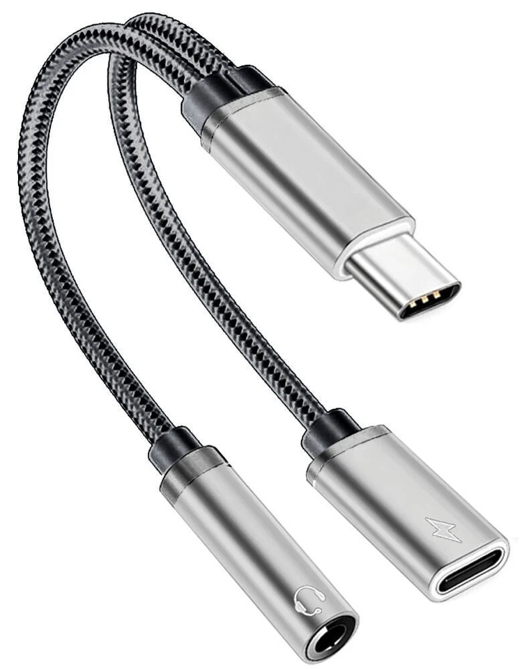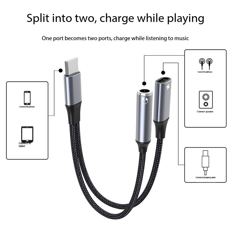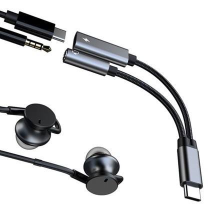 สายอะแดปเตอร์ 2-in-1 แบบ USB-C ตัวเมีย พร้อมช่องเสียบหูฟัง 3.5 มม. สำหรับเชื่อมต่อไมโครโฟนกับโทรศัพท์